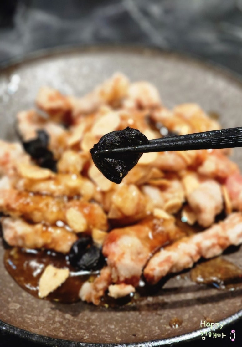 단순히 마늘칩만 올린 게 아니라, 깊은 흑마늘 향과 단맛이 소스에 자연스럽게 녹아 있어