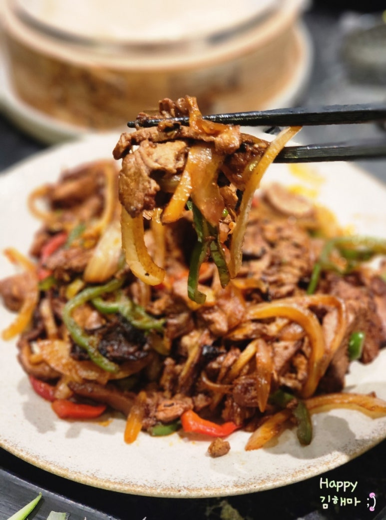 저희는 매콤한 오리 볶음을 선택했는데, 양이 정말 많아서 일부는 포장해 나올 정도였습니다.