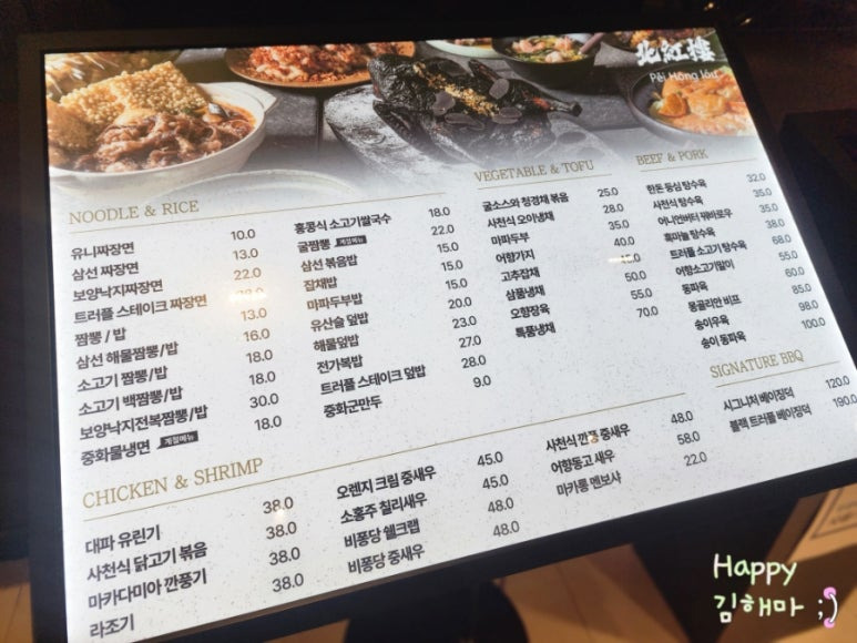 식사 메뉴 중에서는 트러플 스테이크 짜장면, 낙지전복 짬뽕, 유니짜장 등이 눈에 띄었고,