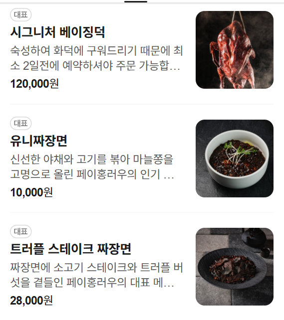 블랙 트러플 베이징덕(190,000원)이 있습니다.
