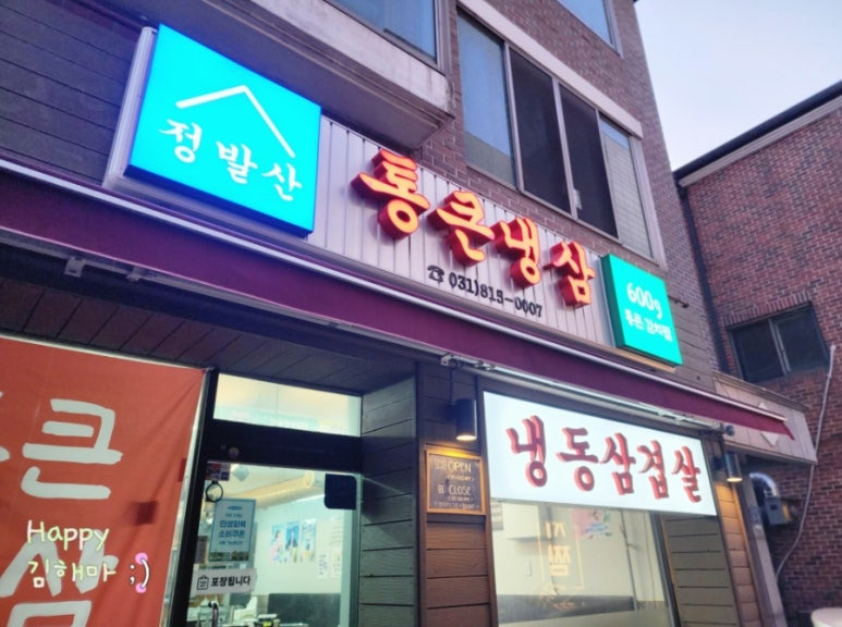 정발산 밤가시마을에 위치한 통큰냉삼+통큰김치찜은