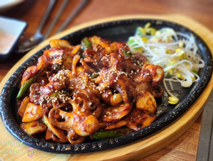 그러고 있는데 매콤한 냄새와 함께 쭈꾸미가 등장! 비주얼부터 제대로였는데, 양념이 진해서 엄청 매울까 걱정했거든요? 근데 생각보다 맵지 않고 달달하면서 감칠맛 제대로 도는 양념이라 밥이랑 같이 먹으면 진짜 최고였어요. 매운 거 잘 못 먹는 사람도 콩나물이랑 같이 먹으면 딱 좋을 정도였어요.